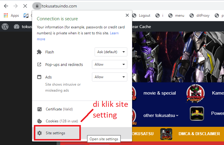 3.pilih combo box allow untuk ads dan pop-ups anda redirect
